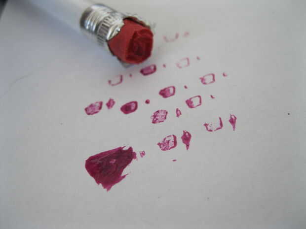 Tratar de sumergir su sello de nuevo en un pequeño charco de esmalte de uñas y lo prueba en un trozo de papel.