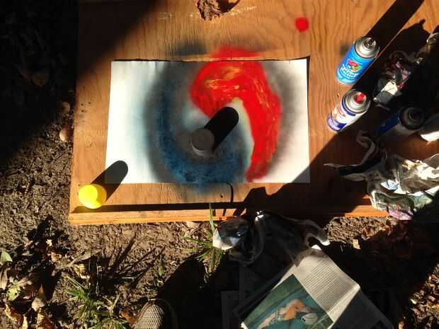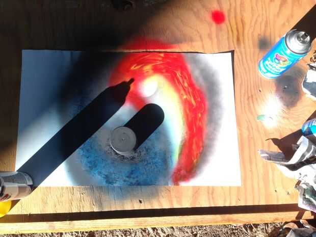 • mientras que la capa roja está todavía húmedo tomar un periódico y poner sobre zona roja mientras arrastra los dedos