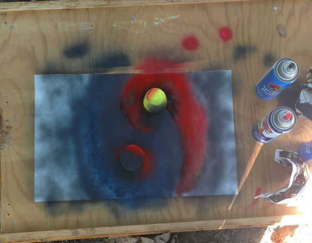 • Rocíe dentro de frontera en negro para crear ilusión esférico
