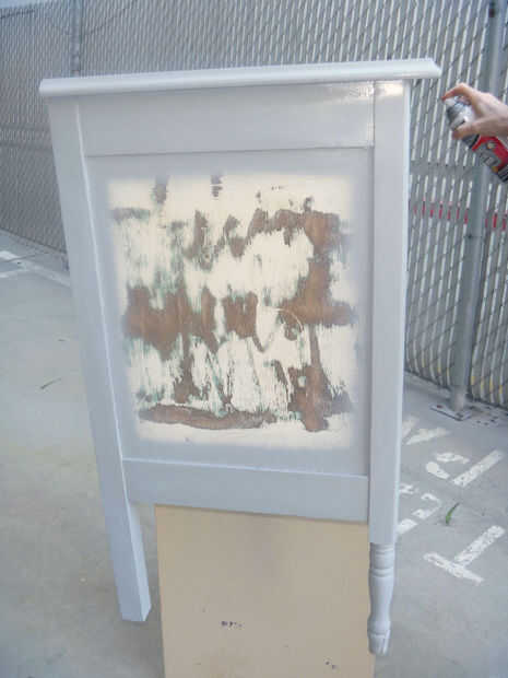 Primer siguiente. Ya que quise usar un metálico acabado de pintura en aerosol, el fabricante recomienda una cartilla "deja de moho". Aunque era pintura madera, pagué el dinero 2 extra para la pintura de imprimación más pesada diseñada para superficies de metal porque eso fue lo que fue sugerido por los expertos de pintura en mi ferretería.