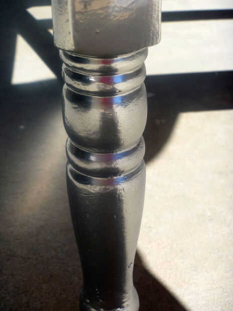 Esta pintura metálica es tan genial! Es nada como las pinturas de spray de plata y oro de días de antaño. Toma un poco de práctica para llegar bien, pero realmente se ve increíble. Prueba en un pedazo de chatarra que averiguar cómo grueso y cómo cerrar para rociar a su pieza. El puede recomienda 10" a 16" distancia desde el sujeto. Encontré que esta aplicación daba mi acabado un aspecto 'moteado', no el brillante aspecto que quería. Empezar más lejos sobre la superficie de prueba y luego acercarse a la mejor cobertura de la superficie de la figura.
