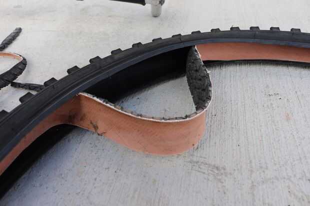 Tras este paso, desea Inserte el nuevo corte neumático o reutilizado neumáticos que van a volver a la bicicleta. Esto se puede lograr simplemente insertando el neumático de corte en el neumático que busca reutilizar en la bicicleta. Sin embargo, cuando se está insertando el neumático, usted se enfrentará con el predicamento del neumático no totalmente apropiado en el neumático que pretende ser reatada a la moto, por lo tanto, el neumático que se inserta debe cortarse para que podrían caber en el neumático para su reutilización en la bicicleta. Para cortar el neumático, utiliza un cuchillo de Stanley y medir las piezas superpuestas y corte para hacer un ajuste perfecto!