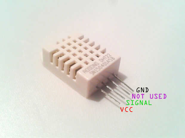 El siguiente sensor es el sensor de humedad y temperatura DHT22. Trabaja con 5V o 3.3V así que podría ser utilizada en 2 diferentes escenarios con el tablero de Seeeduino o 5V normal Arduino Uno. El pinout se explica en la imagen, pero se puede ver, que funciona de manera diferente. En lugar de utilizar vamos a decir I2C, salida analógica utiliza salida digital. Para eso necesitamos una biblioteca, que tome los datos del sensor en el momento adecuado y transformar a números utilizables. Ligar a biblioteca de adafruit para este sensor.