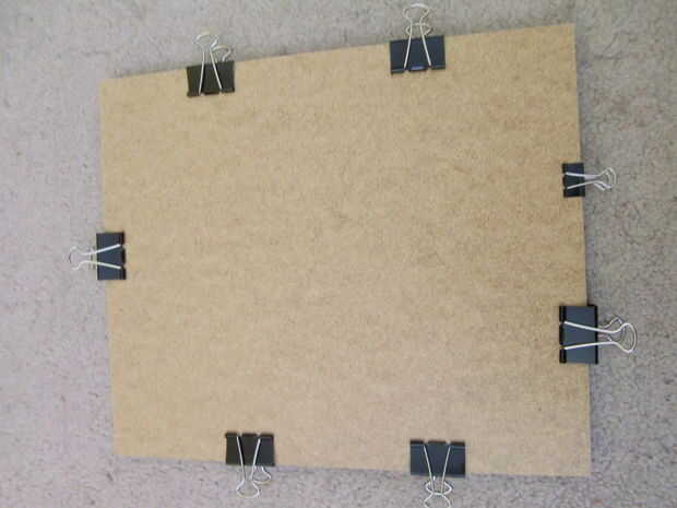 Voltee la unidad capa para comprobar que su diseño es visible y no cubierto por los clips de la carpeta. Entonces voltee hacia atrás por lo que la Junta claro es en la parte inferior y coloque una revista u otro tablero debajo de la unidad de la capa para que el diseño no es que expone a la luz.