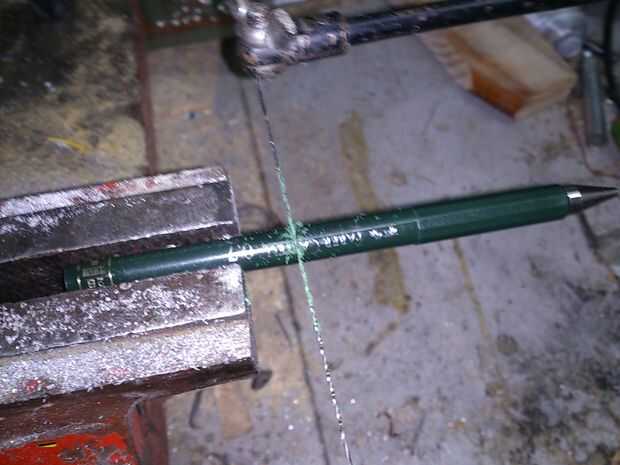 Montaje de la pluma en el tambor es la parte más crucial, el agujero debe ser muy apretado por lo que debe ser muy cuidado de no exceder el tamaño correcto. En mi caso, hice un agujero muy apretado, tenía que introducir el bolígrafo con un martillo de goma (un pequeño bisel maravillas aquí), es tan fuerte que no necesita incluso ningún tipo de pegamento para sujetar firmemente la pluma.