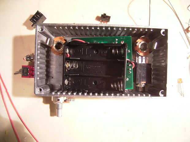 Primero se reúnen todas las piezas y ponerlas dentro de la caja para visualizar el espacio, asegúrese de que no se enfrentarán entre sí antes de taladrar los agujeros (que es un error a menudo en el pasado al construir los efectos de la guitarra). Sólo tengo un taladro de mano en casa para que los agujeros de perforación es un proceso agotador y requiere mucho tiempo para mí.