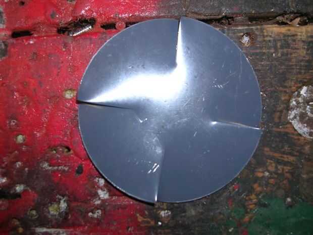 En primer lugar, cortar 4 ranuras en el disco a 90 grados uno del otro. Asegúrese de no cortar hasta el centro.