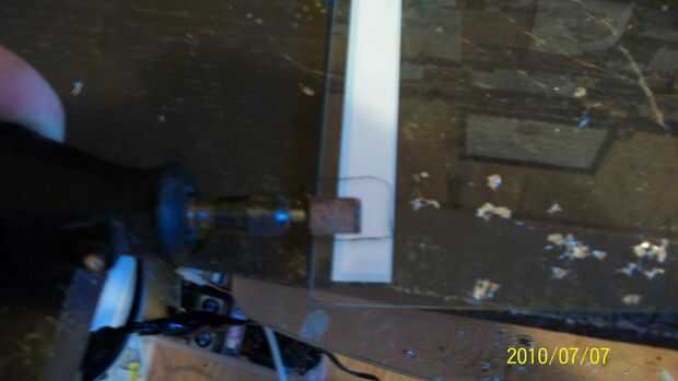 En la parte inferior de la parte delantera y espalda de plexi-glass que completan un rinconcito donde la tapa y el cierre de la válvula se sienta. Porque es un diámetro mayor que el PVC mismo necesitamos redondo hacia fuera. Ser paciente cuando esta sólo está haciendo un poco y revisar para hacer un ajuste apretado a lo largo de la parte inferior del tanque. I temp montado la tapa y válvula de sobre para comprobar la muesca fue bien hecha y el PVC se sentó agradable y apretado a lo largo de la parte delantera y trasera de cristal. También alrededor de la parte inferior de los lados donde van a quedar en el PVC. Estos deben ser redondeados para asegurar un cierre hermético.