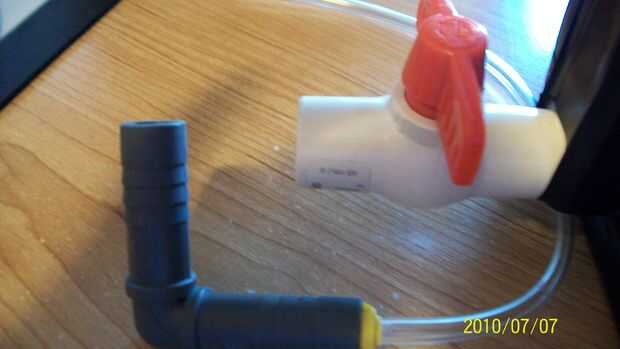 Ahora desde el codo de plástico que se conecta con el cierre de la válvula, el interior diámetro es un poco más generalmente el attched de manguera de acuario a la bomba. Acabo de añadir que una pequeña cinta de la manguera hasta podría introducirla en el codo firmemente. Yo deje mi tanque para 24 hrs. para asegurarse de que la silicona tuvieron la oportunidad de secar y fijar. Al día siguiente probar con agua para ver si tienes alguna fuga. Si eres algo como yo usted sobre todo (silicona, pegamento, cinta, etc.) y no encontrar una fuga el primer tiempo intentando. Ahora su tanque está listo para usar!