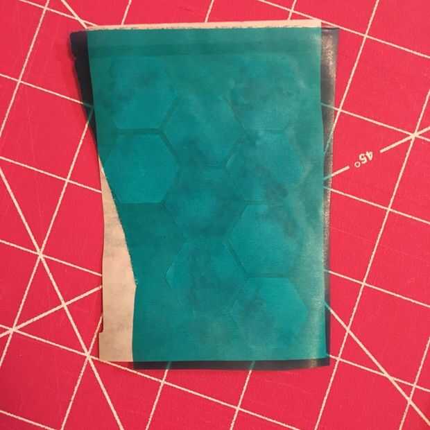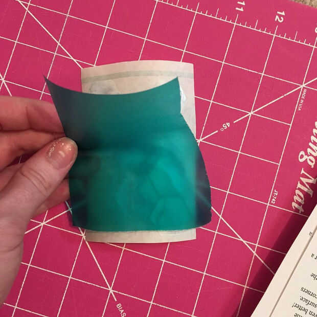 Asegúrese de que todas las áreas del papel de las etiquetas engomadas/contacto están en contacto con la parte pegajosa de la cubierta del libro. En las fotos de la calcomanía del hexágono, mi libro material de cubierta es un poco deforme. Esto no afecta la colocación de la etiqueta, así que no te preocupes si tu de como termina mirando!
