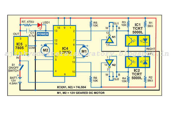 Estos Robot rastreador de línea utiliza la parte principal que es el chip del populer IC -IC L293D el conductor del motor IC / H - puente IC!!!!!!