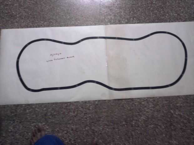 He hecho la pista usando la cinta aislante negra sobre papel blanco. Debido a la detección de la luz y por lo tanto girando el motor