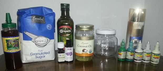 Juego alrededor con la cantidad de aceite para hacer la textura que usted desea, una pequeña piscina de aceite en la parte superior está bien por mí. También podría sustituir aceite de almendras dulces o aceite vegetal incluso si no tienes coco o aceite de oliva y azúcar puede ser sustituido con sal o azúcar morena. Para mi papá sé que le gusta los olores cítricos, así que hice la fragancia dominante naranja. Añadí el aceite esencial de lavanda por sus propiedades antivirales, antiinflamatorias y antibacterianas. Algunas otras ideas para aromas de aceites esenciales tratar con unas características beneficiosas son árbol del té, ciprés, menta o eucalipto. Si no quieres comprar aceite esencial del extracto de una cucharadita de vainilla pura te servirá para añadir un olor agradable.