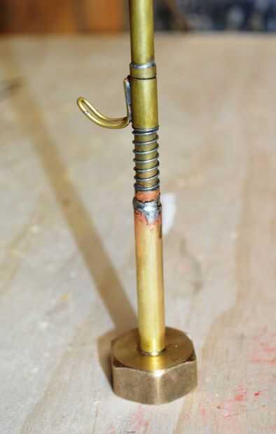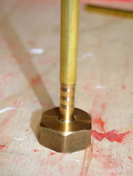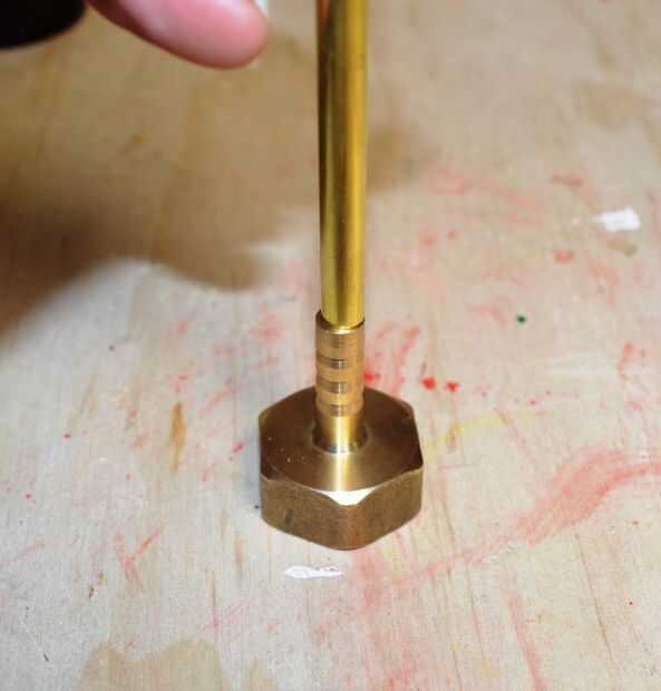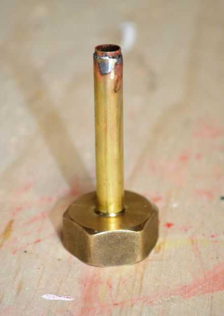 Uno de los pasos más difíciles para mí estaba trabajando cómo conectar el cañón a la válvula del aspersor. Me tomó algún tiempo para llegar a la versión final debido a los tamaños diferentes entre el barril y el extremo de la válvula. En mi primer prototipo, logran subirse el cañón mediante un reductor de cobre, un tornillo y un montón de soldadura. El principal problema con esta idea aunque era él era prácticamente imposible conseguir el cañón derecho. Tuve que volver a soldar algunas veces hasta que yo estaba contento con el resultado final.