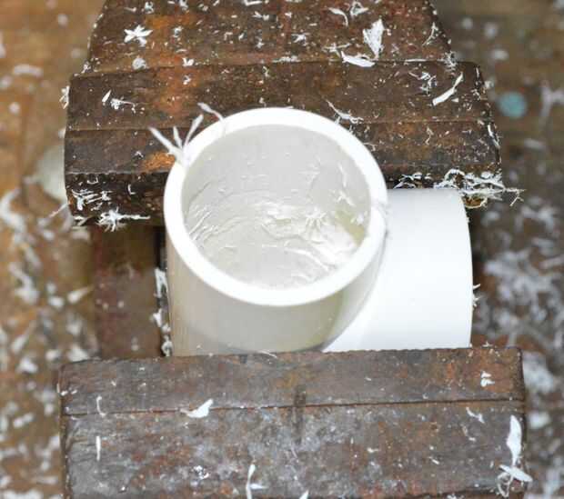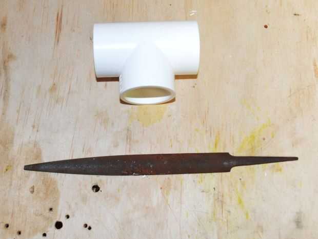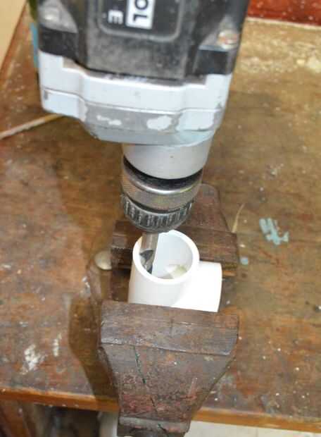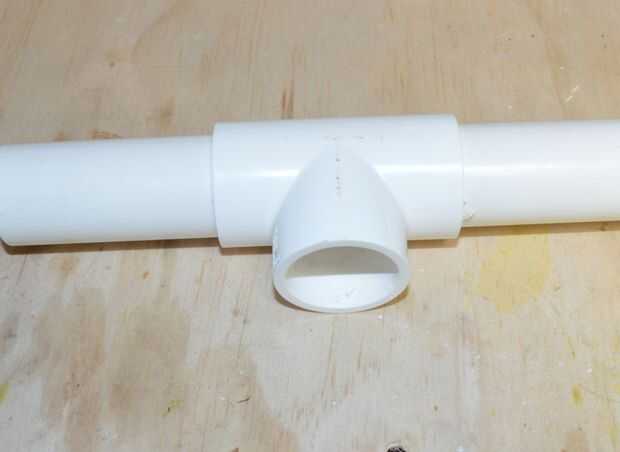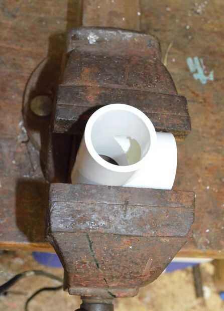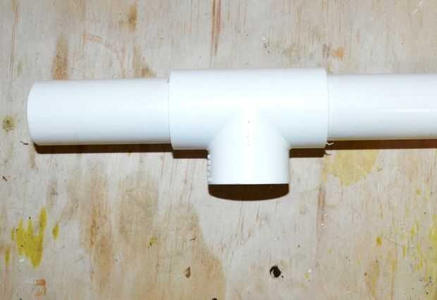 Lo primero que debemos hacer es modificar la sección de "T" para poder montar un trozo de tubo de 25 mm a través de él. Esto hace que la cámara de aire para la pistola.