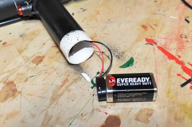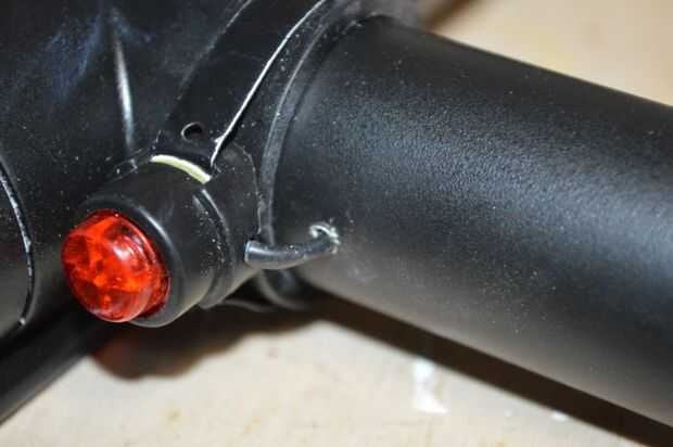1. el interruptor con que fui era de una bocina de bicicleta de los niños. Usted puede conseguir éstos de eBay de usted fue utilizar el mismo interruptor. De lo contrario sólo tiene que utilizar cualquier interruptor momentáneo. Perfore los orificios adecuados y conecte el interruptor.