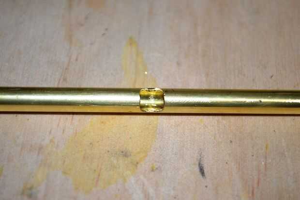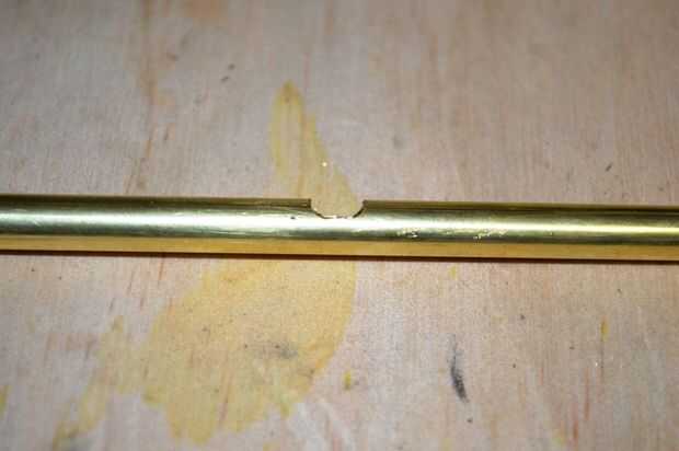 3. próxima cosa a hacer es cortar todas las otras piezas de cobre, etc. que necesita. Los 2 collares y la pieza más grande de la tubería se corta de tubo de 8mm. El pedazo de alambre de cobre tiene que ser doblado como se muestra a hacer «desencadenante»