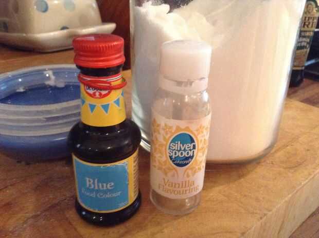 Realmente, se puede hacer su propia lista de ingredientes. Como tiene azúcar impalpable y esencia o aceite, es perfecto!! Para jazz para arriba un poco, fácilmente puede agregar unas gotas de colorante de alimentos!!!! Estoy utilizando 2 cucharadas de azúcar, media una CDA de esencia de vainilla y unas gotas si alimento colorante pero depende realmente de ti!!!!!!