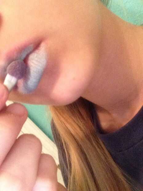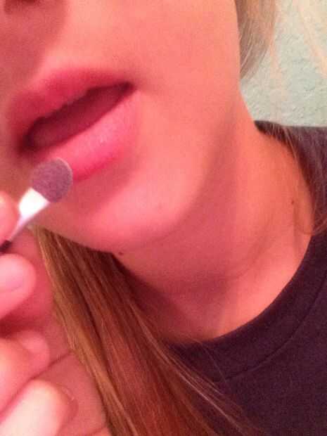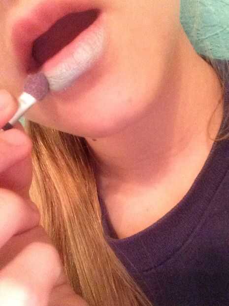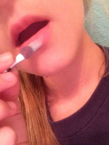 Lo primero que tienes que hacer es seleccionar cualquier color de sombra de ojos. Luego tomar un cepillo de sombra de ojos normales y se aplica a los labios.