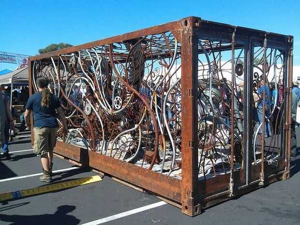Restaurantes, residencias, arte: toneladas de proyectos en todos los ámbitos están mirando para apreciar el potencial de estas cajas funky. Yo estoy particularmente interesado en reutilizaciones que respetan la forma original, como la obra de arte más abajo (Maker Faire San Mateo 2012, creo que por alguien de NIMBY).