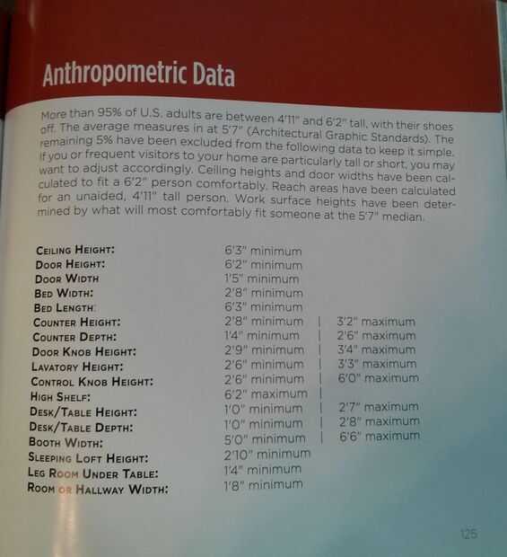 - Personas: ha atestado de trabajar dentro de un envase que sólo contiene una 4'x 4' tabla, francamente difícil de mover y mucho menos trabajar con más de 2. Prestar atención a los datos antropomórficos en la imagen siguiente (de Pequeño libro de la casa de Jay Shafer)