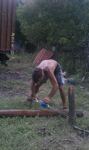 3. Mano de obra: He utilizado rodillos de madera y un tirante de mi contenedor en Austin; nunca más. Sangre, sudor y lágrimas por galón.