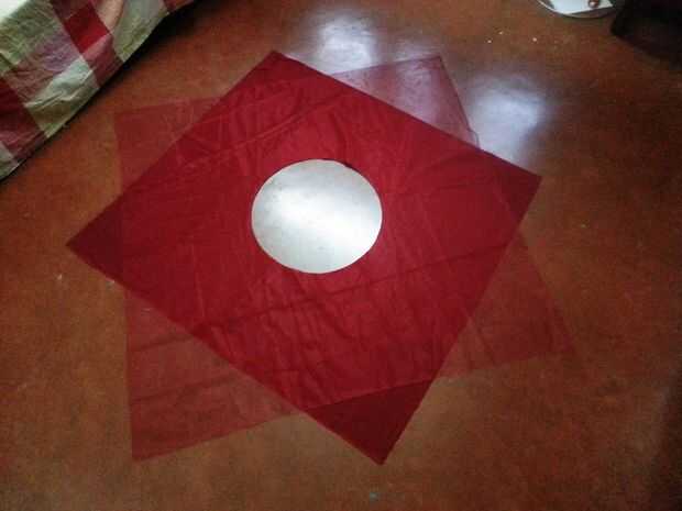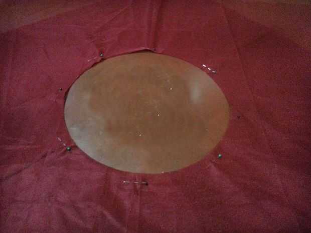 Después de que termines ahora cortar, arreglar las 2 piezas que quieras. Coloqué la tela de algodón en el fondo y tejido de red en la parte superior (ver imagen). Cubrió ambas piezas juntas alrededor del círculo, para que no se mueva.