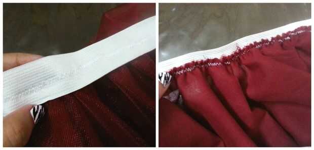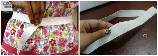Cortar el elástico, manteniendo margen 1.5. Ahora coser ambos lados del elástico, manteniendo 1 pulgada sobre el otro y usar la puntada zig-zag.
