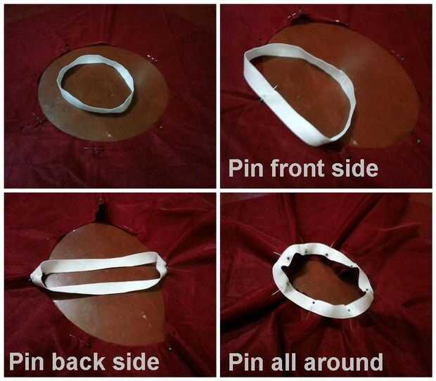 Ahora pin elástico alrededor del círculo (lado derecho de la falda). Prender primero la parte delantera, luego la parte posterior y luego el resto.