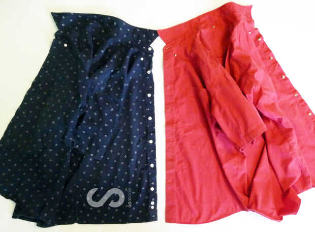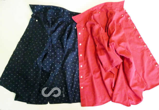 Queremos que los cuellos de las dos camisas combinadas para envolver alrededor de nuestra cintura, así que la forma más fácil de saber qué tamaño que usted necesita es tratar. Porque la forma básica de la falda puede lograrse en menos de 1 minuto, no hay nada que detener alguien de tratar esto en su tienda local de segunda mano si no puede encontrar la combinación ideal en casa.