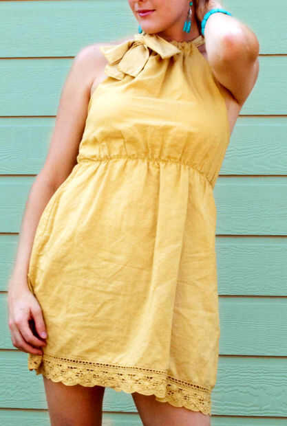 8. a continuación, envolver un trozo largo de elástico alrededor de la cintura en el mismo desgaste de área que cubrió en su vestido. Encontrar el tamaño/tensión que te gusta y corta el elástico con ese tamaño.