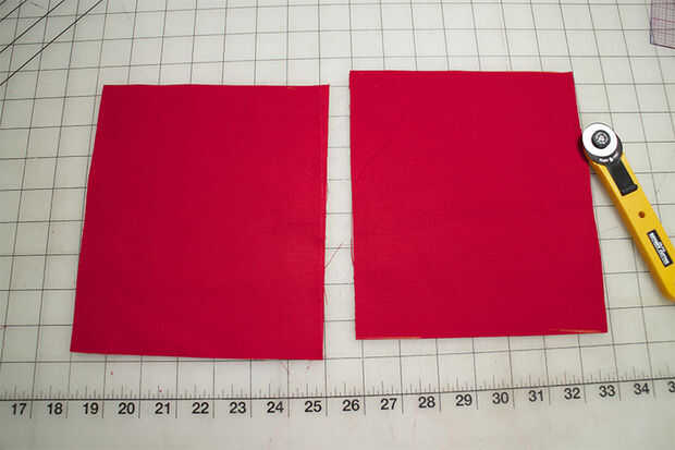Para corte 2, dobla un trozo de tela en medio, pin y corta las dos piezas a la vez. Esto asegurará que el corte de piezas se duplican.