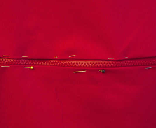 -Cierre para arriba y compruebe las longitudes. Si no coincide, descoser aproximadamente la mitad de la longitud de la cremallera, pin y coser otra vez va poco a poco.