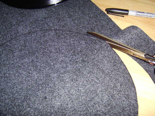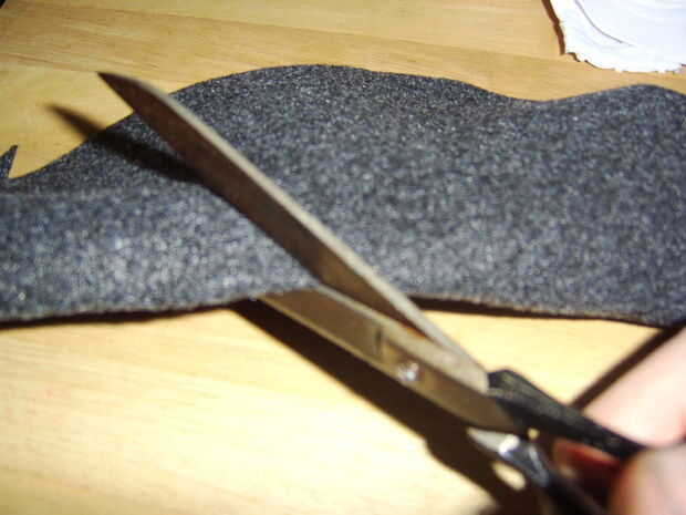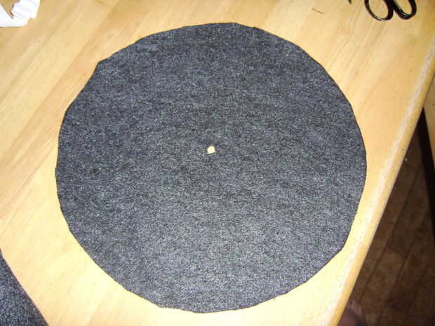 doble la estera por la mitad a través de su eje de simetría, con cuidado corte una muesca "V" pequeña en el orificio marcado. Asegúrese de que el corte se centra exactamente en la marca, o usted tendrá que hacer algún corte importante!