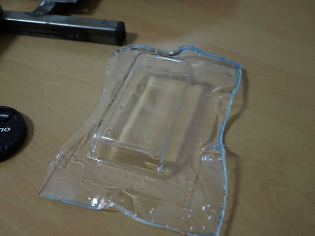 Poner el acrílico sobre el molde de madera y déjelo calentar hasta que comience a doblar sobre el molde. Entonces rápidamente Retire el molde con el acrílico y empújela hacia abajo el molde con una forma ligeramente más grande que el molde, para forzar el acrílico a la forma. Usé algunos acero cuadrados tubos previamente prepararon para ello, pero un marco de madera debería funcionar así. Presione hacia abajo duro y utilizar algunas pinzas para mantener la forma hasta que se enfría. Don´T usar agua para enfriarlo. Si usted sobrecalientan el acrílico puede empezar a crear algunas bubles. En mi caso decidí continuar de todos modos desde que don´t con las hojas más de 3mm y la won´t de las burbujas causan problemas.