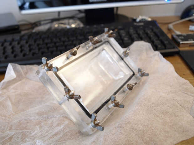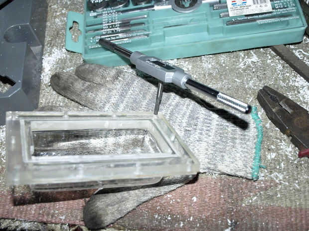 Perforar algunos agujeros de 3mm como se muestra en la primera imagen. Utilizar una herramienta para crear hilos en el acrílico y enrosque los pernos en su lugar.