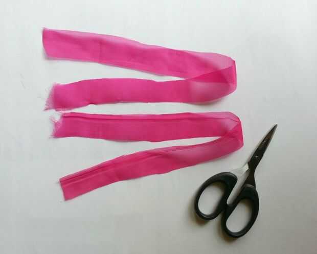Cortar 2 tiras largas de la tela de tejido. Estas piezas deben ser lo suficientemente largos para hacer un nudo de lazo.