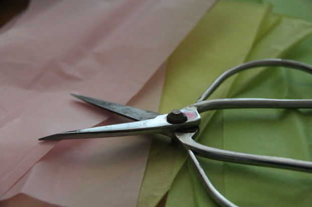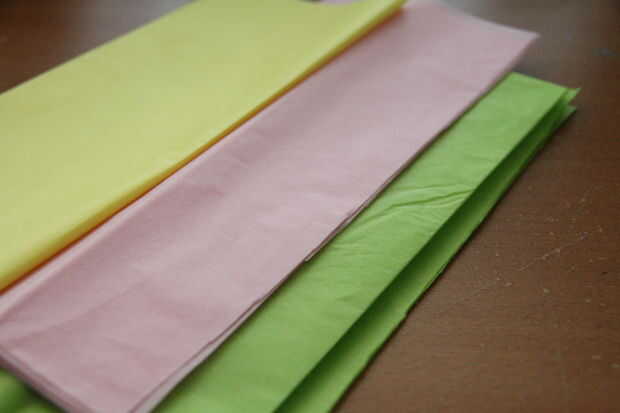 Tomar su papel y escoger los colores que desee. Después, cortar en rectángulos de largo, teniendo en cuenta que cuanto más tiempo el rectángulo más los pétalos.