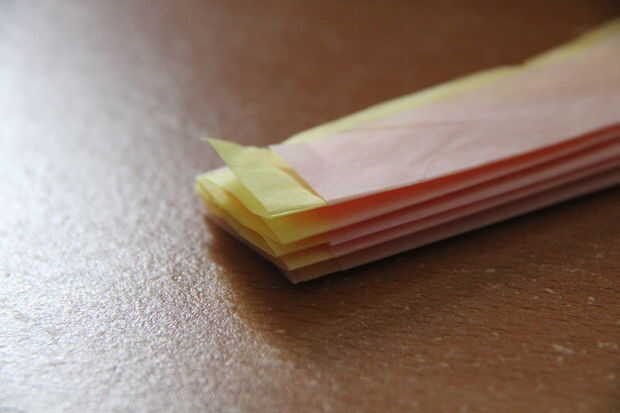 Una vez hecho eso, comienzo doblarlo como un acordeón. El más grande los pliegues de acordeón, el más grande será sus pétalos y la suelto a ver!