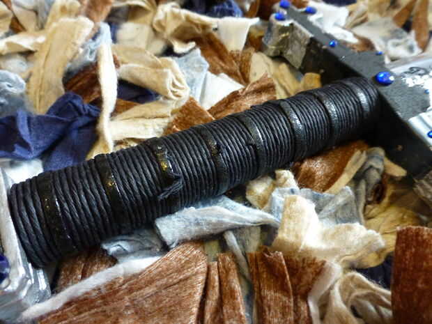 Si usted decide hacer una empuñadura redonda, probablemente querrá envolver con algo desde el paso de la decoración. También está la manija cuadrada, que lleva un poco más largo para hacer pero no necesita ser envuelto.