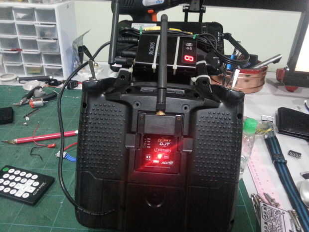 Primer encendido Roverbot entonces encienda el módulo transmisor una vez hecho el módulo receptor debe indicar un enlace exitoso conexión vía L.E.D