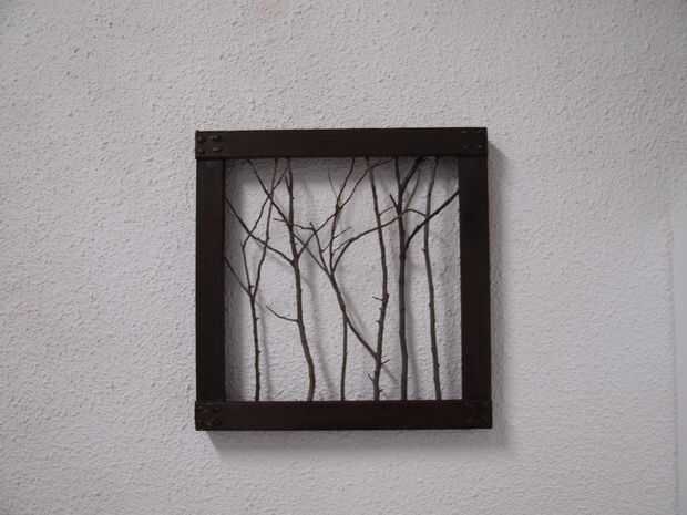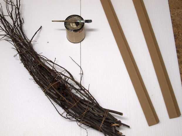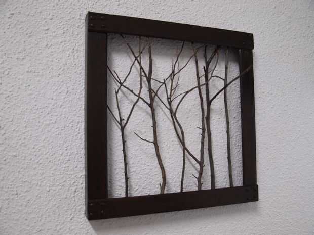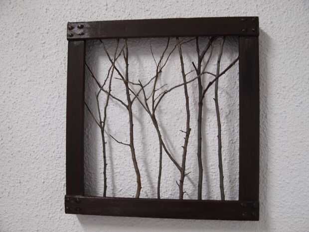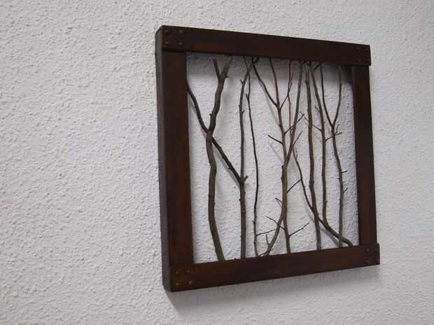 Hola. Quería mostrar cómo usted puede hacer fácilmente ramas enmarcado con sólo tres ingredientes: embalaje de esquinas de cartón, coloreada madera barniz y por supuesto árbol de ramas.