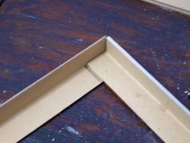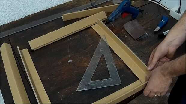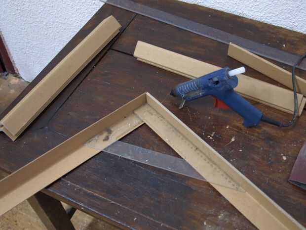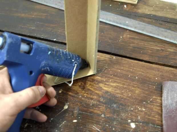 Nos superpuestos dos de los lados encima de los otros dos así que tuvimos que cortar unos 4 mm de exceso de material en la parte posterior usando un cortador. Pegar las esquinas de cartón usando pegamento caliente.