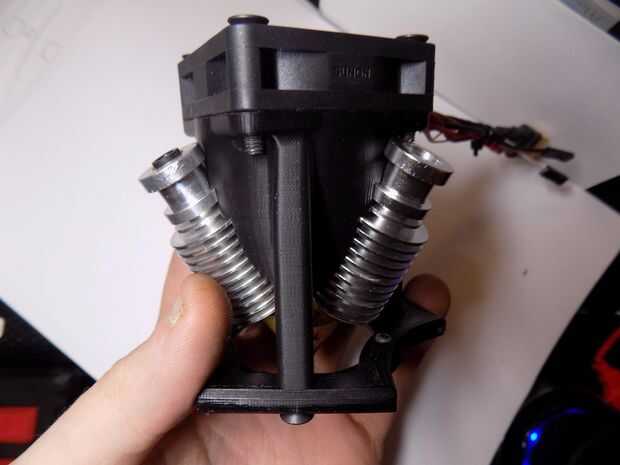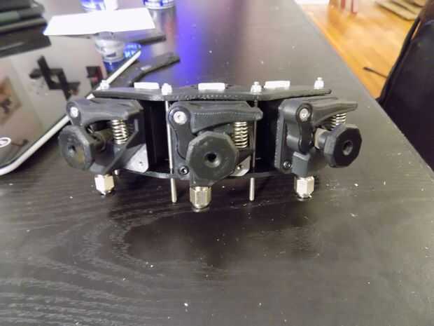 4) mi diseño original de la extrusora de bowden y varias formas de montar los tres Extrusoras para su montaje