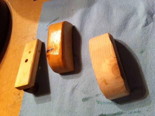 Os adjunto también un mango en el la parte superior. Para hacerlo, cortó la válvula y utiliza el agujero para pasar a través de un perno largo (3"). Un taco de madera y algunos restos de madera se utilizó para hacer el mango.