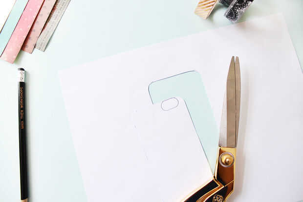 Coloca tu celular boca abajo encima de la hoja en blanco y dibuja todo el contorno con el lápiz de carbón. Esto servirá como plantilla para tus forros.