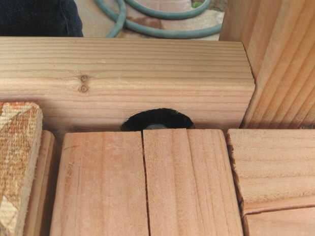 -Taladre un agujero profundo de 1" en las dos intersecciones más cercano a S5. Hacer el agujero lo suficientemente ancho para caber la cabeza hexagonal del perno en el (1/2" es generalmente bueno).