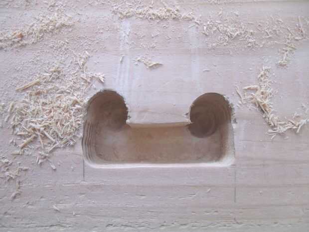 (Opcional para 21A-B) Pueden cuadrar las esquinas internas de los 2 orificios usando el cincel. Esto no es necesario, pero ayudará los pernos a permanecer en el lugar si tiende a mover alrededor de demasiado y deslizamiento.
