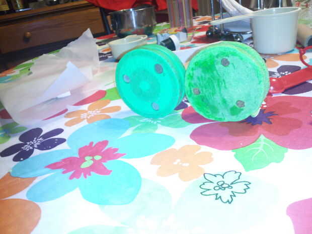 Colorante alimentario artificial que no hacemos en nuestra casa... como en cero. Incluso no dejó comida en la casa si contiene colorantes artificiales. Así pues, sorpresa... estas galletas son coloreadas con espinacas!!!! No le cabrito. Me di cuenta