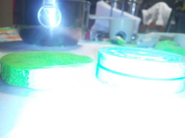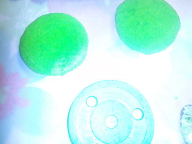 Colorante alimentario artificial que no hacemos en nuestra casa... como en cero. Incluso no dejó comida en la casa si contiene colorantes artificiales. Así pues, sorpresa... estas galletas son coloreadas con espinacas!!!! No le cabrito. Me di cuenta